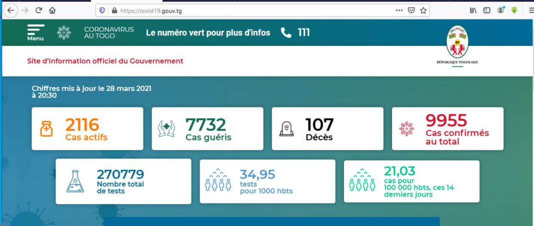 Covid-19: la situation au Togo ce dimanche 28 mars 2021